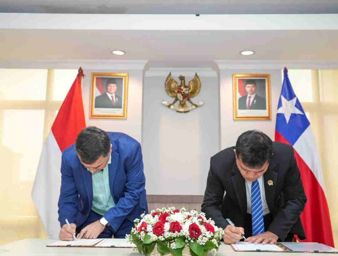 Indonesia, 19 de mayo de 2025.– Con el objetivo de fortalecer la cooperación bilateral en materia de medidas cuarentenarias y certificación electrónica entre Chile e Indonesia, el ministro de Agricultura, Esteban Valenzuela, encabezó la firma de un Memorándum de Entendimiento (MoU) junto al jefe de la Agencia de Cuarentena de Indonesia, Sahat M. Panggabean.