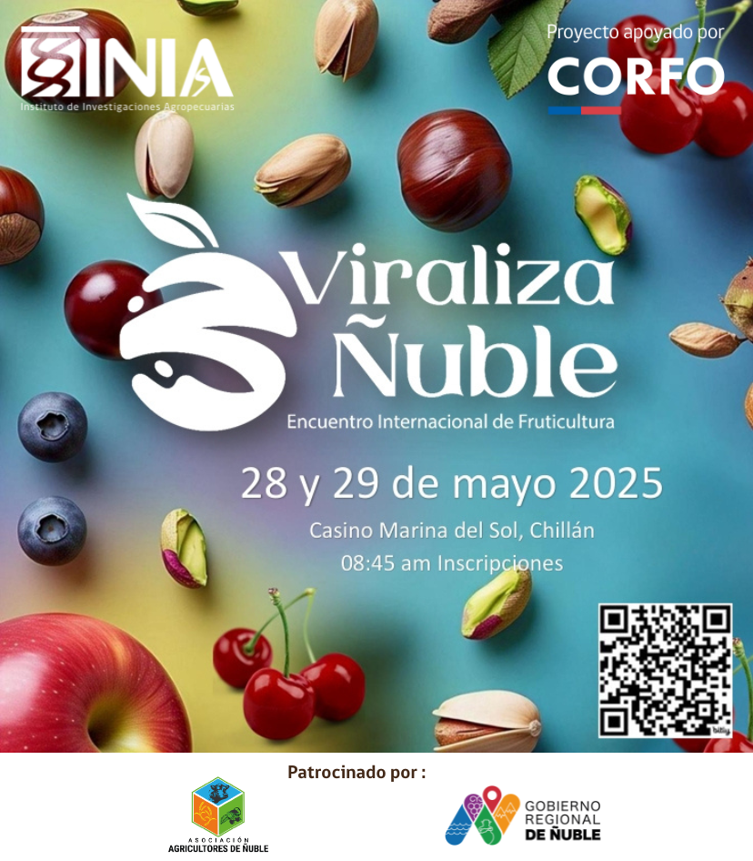 El encuentro internacional Viraliza Ñuble, que tiene como lema “Claves para el desarrollo frutícola de la Región de Ñuble”, es gratuito, pero requiere inscripción previa a través de la web oficial www.nublefruticola.cl.