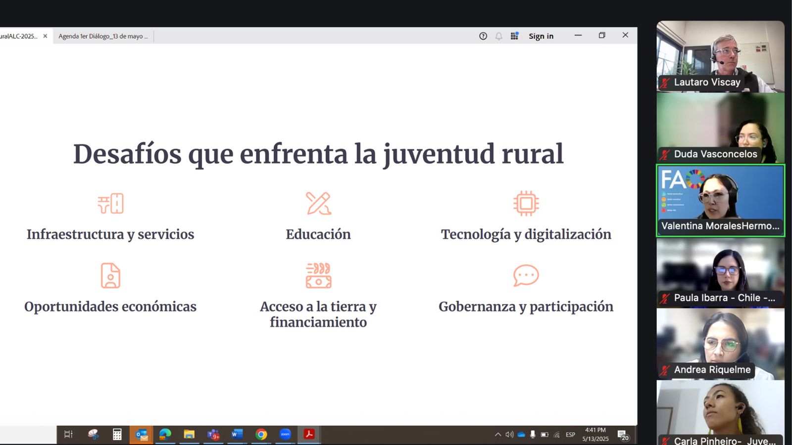 Santiago, mayo de 2025. Con el objetivo de promover la permanencia, autonomía y protagonismo de las juventudes en los territorios rurales, asegurando la continuidad de la Agricultura Familiar Campesina e Indígena (AFCI), el Instituto de Desarrollo Agropecuario (INDAP),  la Organización de las Naciones Unidas para la Alimentación y la Agricultura (FAO), la Reunión Especializada de Agricultura Familiar del MERCOSUR ampliado (REAF), y el grupo de Juventudes Rurales del MERCOSUR, desarrollaron el ciclo de seminarios virtuales “Derribando Mitos: Jóvenes que Transforman el Campo”.