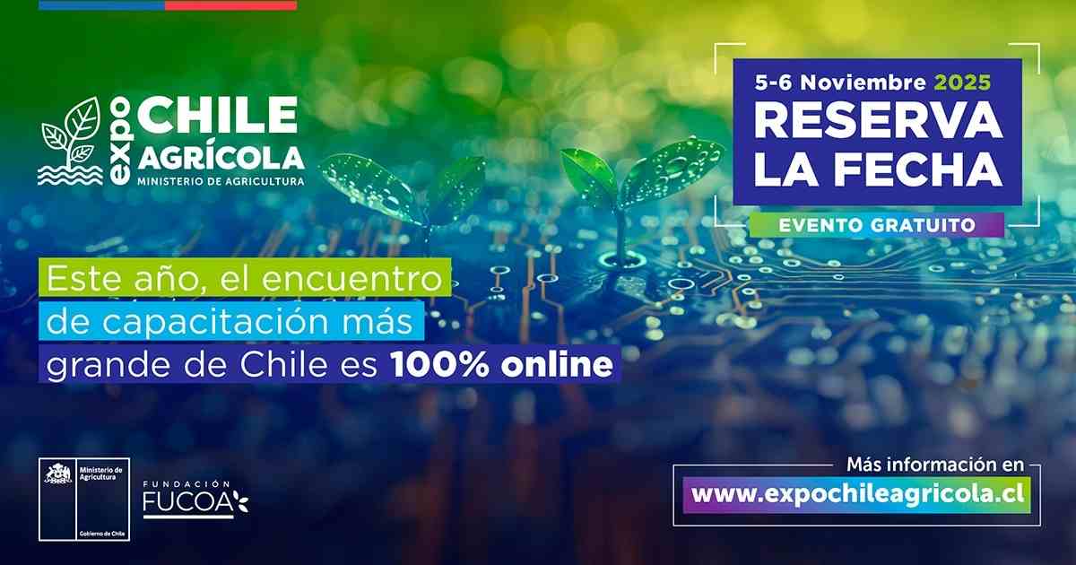 Santiago, 16 de junio de 2025.-  Expo Chile Agrícola, el evento de capacitación más grande de Chile, 100% gratuito y para todo público, este año se realizará los días 5 y 6 de noviembre de forma completamente online, a través de su sitio web www.expochileagricola.cl, ofreciendo a agricultores y agricultoras de todo el país más de 100 actividades de capacitación sobre temas clave relacionados con el desarrollo de la agricultura y el mundo rural del país, teniendo como principal novedad la inteligencia artificial aplicada al agro.