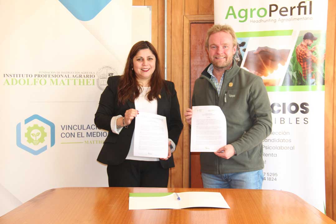Un importante vínculo colaborativo es el que suscribió el Instituto Profesional Agrario Adolfo Matthei con la empresa AgroPerfil, agencia de empleo dedicada a posicionar laboralmente a personas en todo lo relacionado con el mundo del agro.