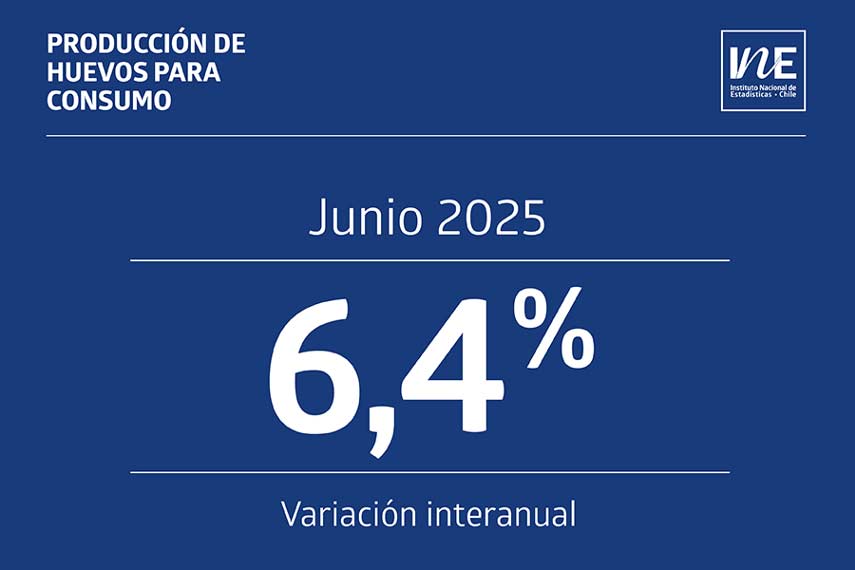 En junio de 2025, la producción de huevos para consumo en Chile experimentó un aumento interanual del 6,4%, pasando de 329.551.665 a 350.700.809 unidades, de acuerdo a lo informado por el Instituto Nacional de Estadísticas (INE).