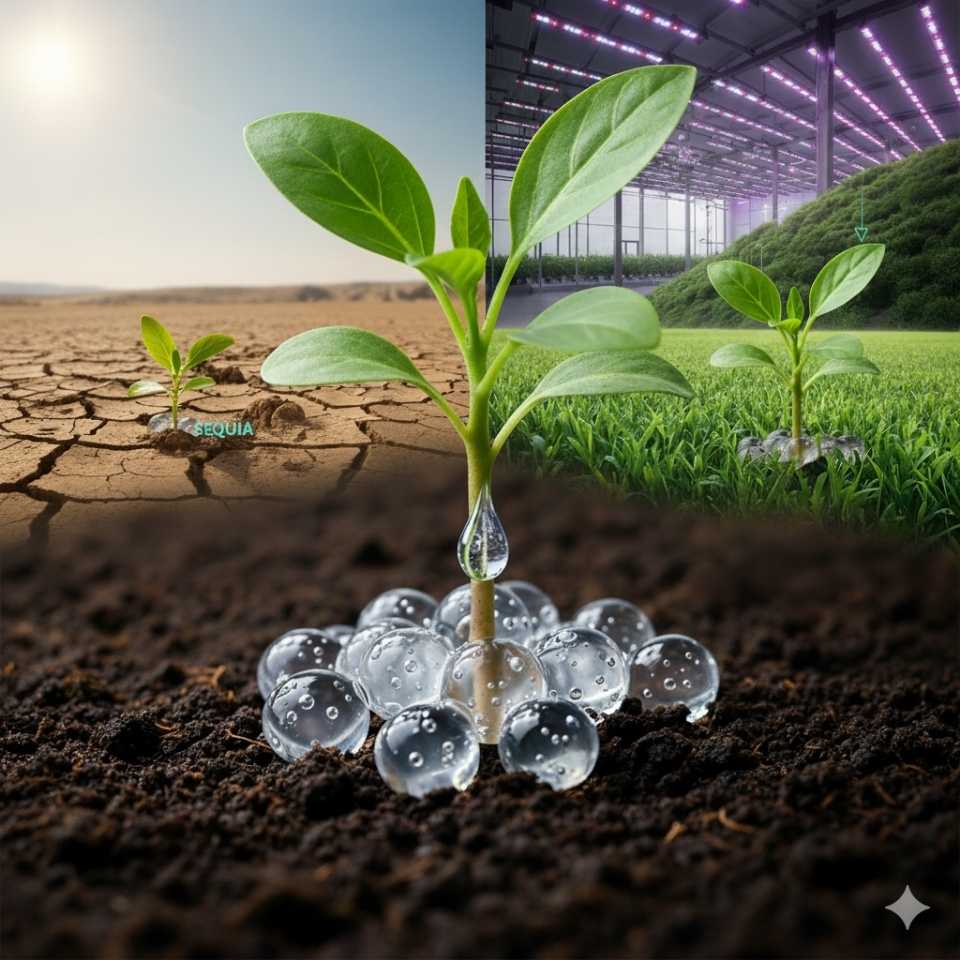 Una de las ventajas más notables es la relación de absorción: 1 kilogramo de hidroretenedor puede almacenar hasta 200 litros de agua, protegiendo a cientos de plantas durante periodos secos. Con una duración de hasta 3 años en el suelo, su funcionalidad es reversible, volviendo a hidratarse con cada nuevo riego o lluvia.