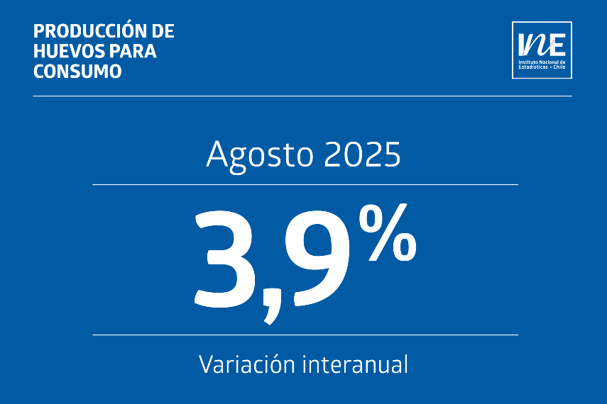 En agosto de 2025, la producción de huevos para consumo en Chile experimentó un aumento interanual del 3,9%, pasando de 352.813.842 a 366.456.808 unidades, de acuerdo a lo informado por el Instituto Nacional de Estadísticas (INE).