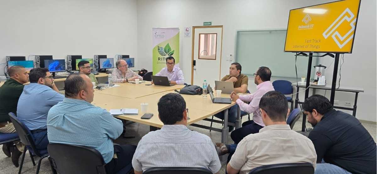 Además, los coordinadores aprovecharon la instancia para compartir sus conocimientos y fueron capacitados en un curso teórico-práctico de IoT, dictado por el Dr. Leonardo Betancur, de la Universidad Pontificia Bolivariana (Colombia), instancia que reforzó competencias aplicables a los proyectos en desarrollo dentro de la red.