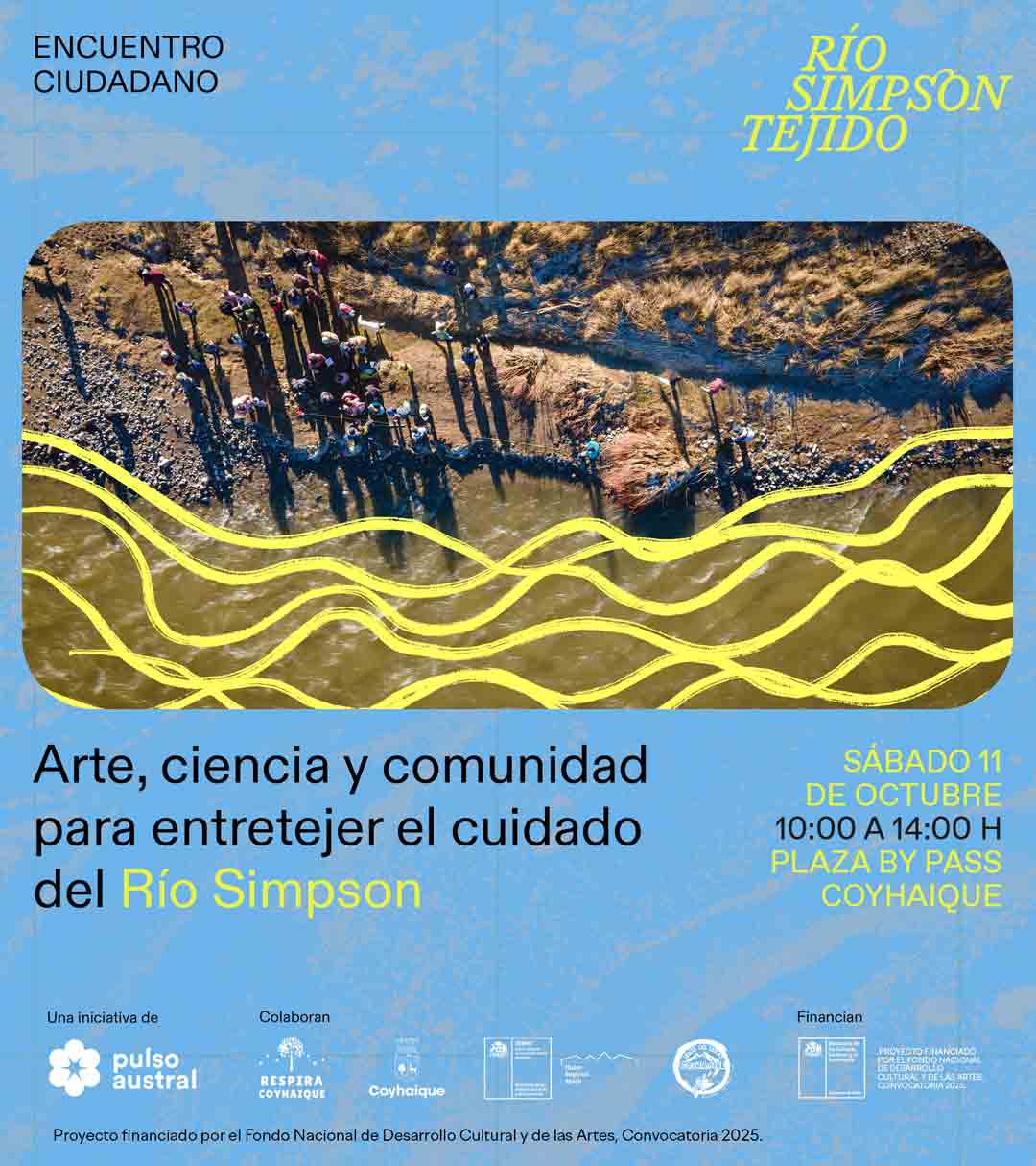 Coyhaique, Patagonia Chilena — Este sábado 11 de octubre, de 10:00 a 14:00 horas, la Plaza del By Pass de Coyhaique se transformará en un espacio de encuentro, creación y reflexión en torno a la cuenca. “El Encuentro Ciudadano Río Simpson Tejido es un llamado a reconectar con las aguas que cruzan nuestras vidas cotidianas, a través del lenguaje que mejor conocemos en la Patagonia: el textil, ese oficio ancestral que también teje comunidad», comentan desde Pulso Austral, organización interdisciplinaria de mujeres que trabaja desde la cultura, el arte, la educación y la ecología para aportar al bienestar de las comunidades ayseninas.