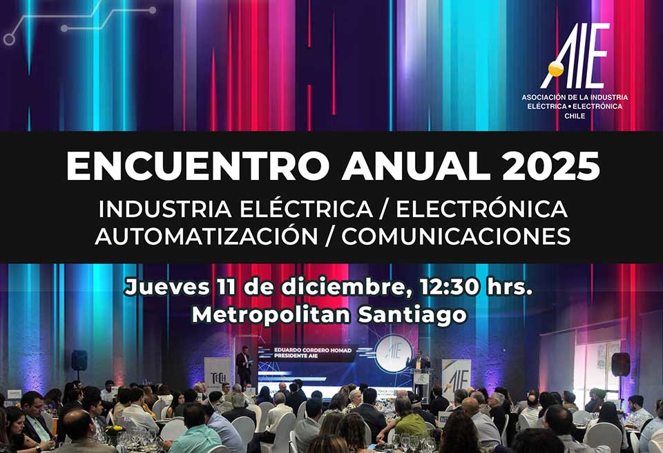La Asociación de la Industria Eléctrica – Electrónica de Chile, AIE, invita a todos sus asociados y a los actores relevantes del sector al Encuentro Anual 2025, uno de los hitos más esperados por la industria. La cita está programada para el jueves 11 de diciembre de 2025, a partir de las 12:30 horas, en el centro de eventos Metropolitan Santiago.