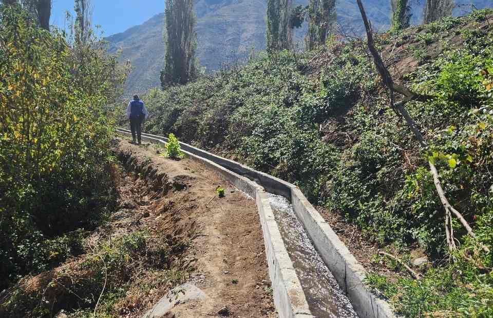 Salamanca, lunes 29 de diciembre de 2025.- En Cuncumén, a los pies de la cordillera, se ubica el canal Las Pampitas o Codicias, que alberga principalmente a pequeños agricultores. Producto de la crisis hídrica que ha golpeado a la zona, la Comunidad de Aguas del canal Las Pampitas o Codicias, presentó un proyecto a la Ley de Riego para el revestimiento de 529 metros del canal, iniciativa que recibió una bonificación por cerca de $44 millones.