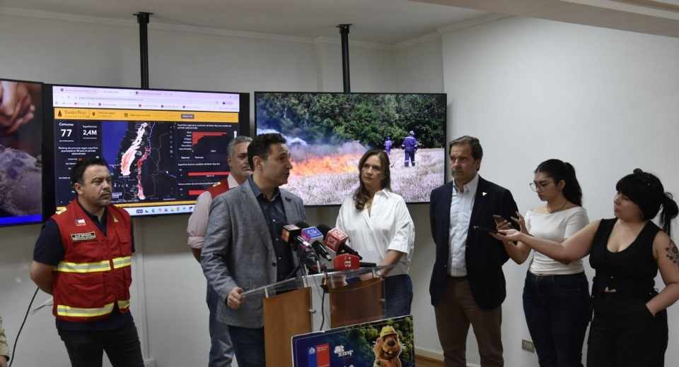 En tanto, el director ejecutivo de CONAF, Rodrigo Illesca, dio a conocer el estado actual de los incendios forestales y presentó el mapa de territorios bajo condición de Botón Rojo.