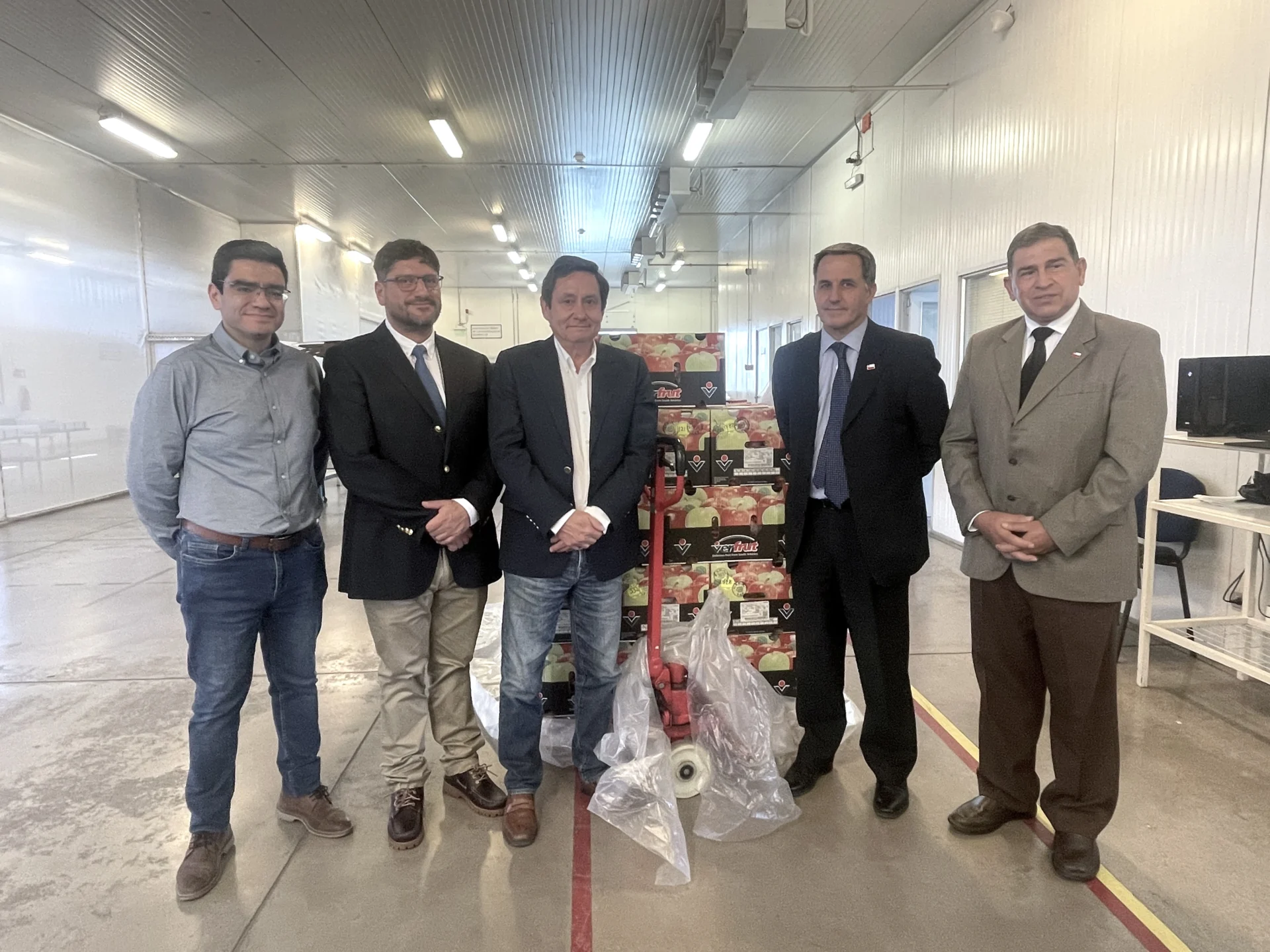 Con el objetivo de conocer en profundidad el funcionamiento de los sitios de inspección fitosanitaria, el subsecretario de Agricultura, Francesco Venezian visitó el sitio de Teno, acompañado por el gerente general de Frutas de Chile, Miguel Canala-Echeverría; el secretario general de la entidad, Rodrigo Gallardo; y la jefa de Protocolos Fitosanitarios de Frutas de Chile, Soledad Ferrada; además del delegado presidencial provincial de Curicó, Óscar Águila; y el director regional del Servicio Agrícola y Ganadero (SAG) en la Región del Maule, Juan Pablo López Aguilera.