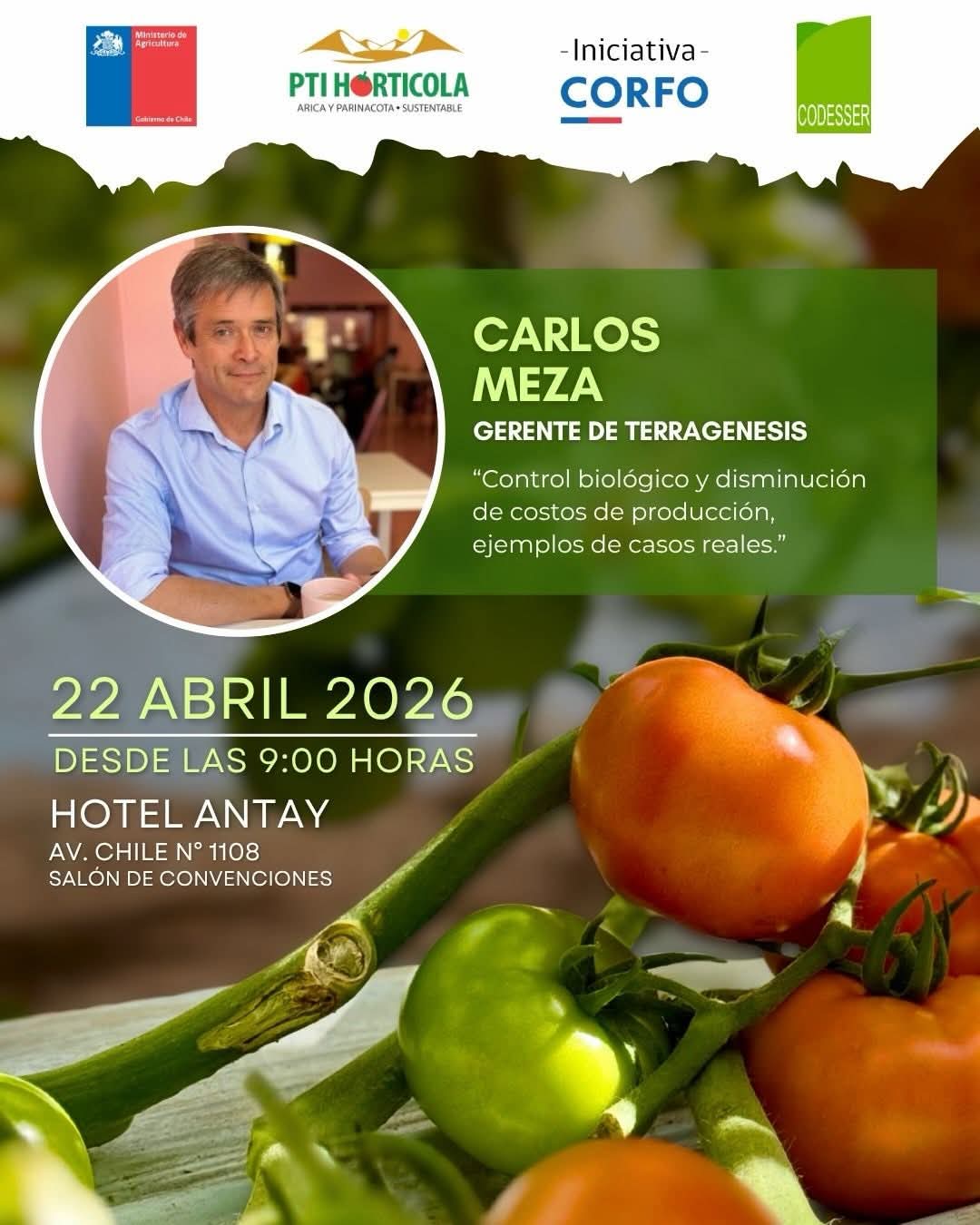 ARICA. El próximo miércoles 22 de abril de 2026, a partir de las 09:00 horas, el Salón de Convenciones del Hotel Antay se convertirá en el epicentro de la innovación agrícola del norte grande. El seminario «Oportunidades en Innovación & Control Biológico para Impulsar la Agricultura de Arica», impulsado por el PTI Hortícola Sustentable de Corfo, reunirá a los máximos referentes del sector para discutir estrategias que permitan una horticultura más resiliente y eficiente.